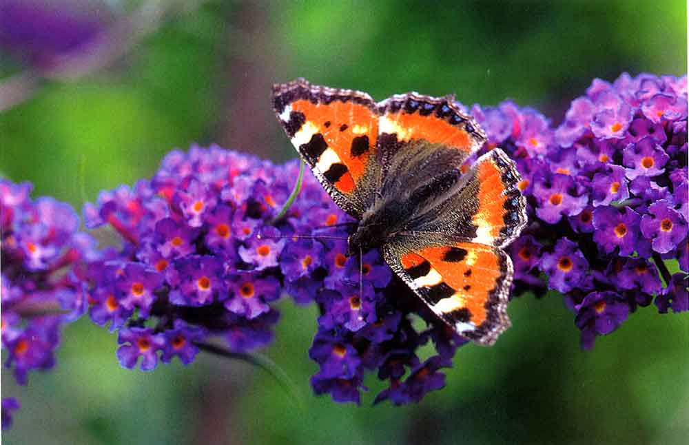 Faltkarte aus Marienk?fer 98794 – kleine lila Bl?mchen